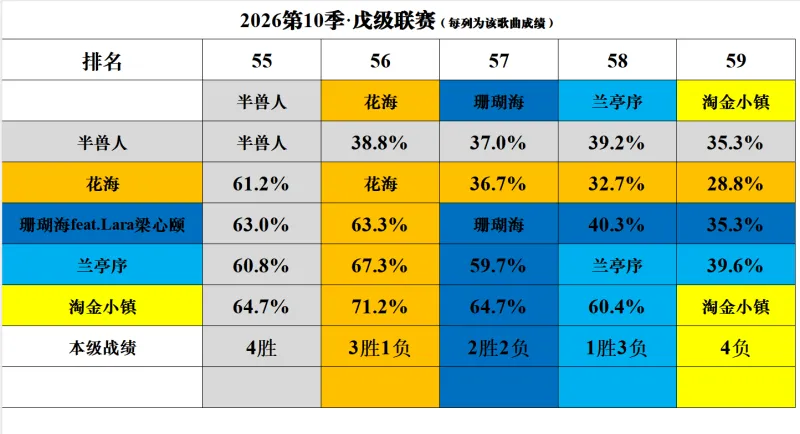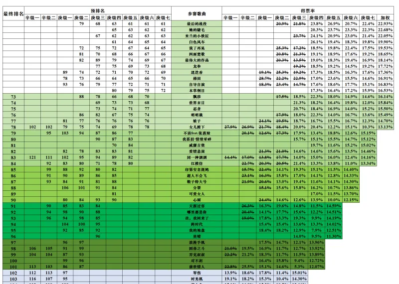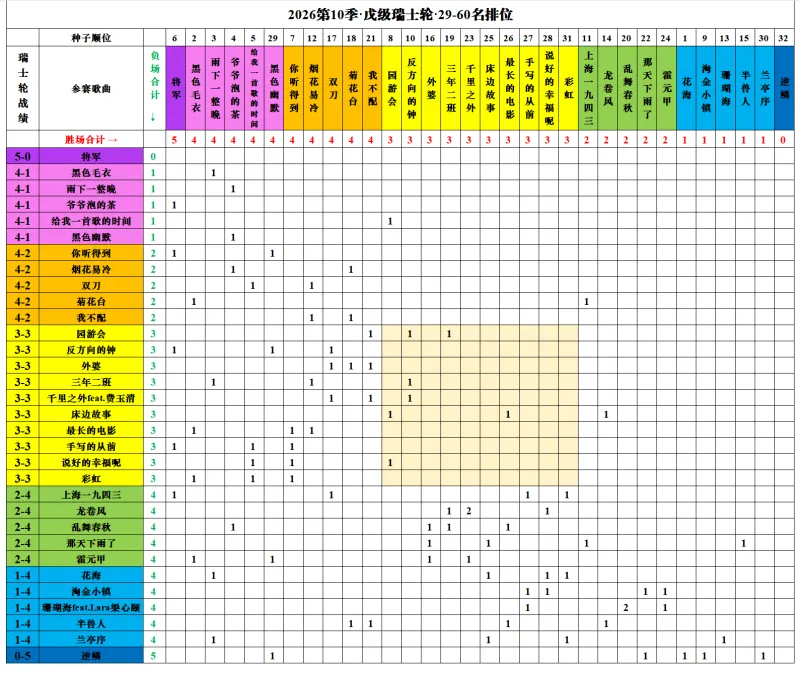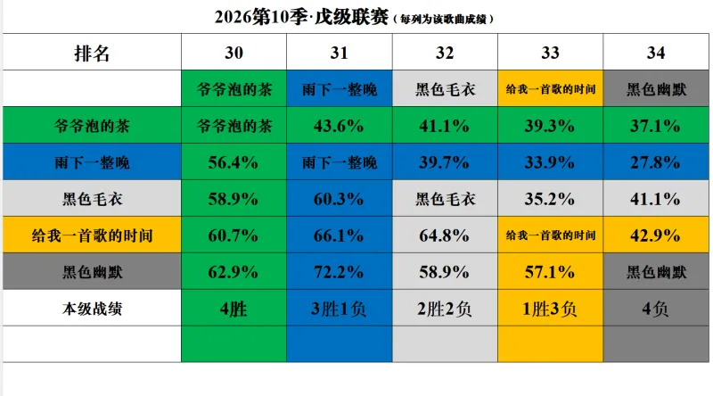 本场起不再补充歌曲,以后每轮淘汰6首,减少一组。